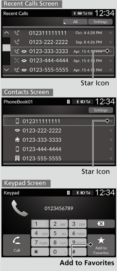 You can make calls by inputting any phone number, or by using the imported Recent Calls, Favorite Contacts, and Contacts entries.