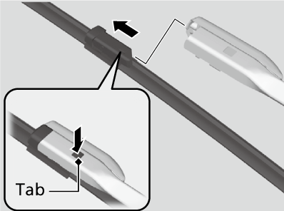 - Depress the lock tab, then slide the wiper blade off the wiper arm.