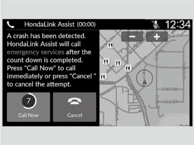 If your vehicle’s airbags deploy or if the unit detects that the vehicle is severely impacted, your vehicle automatically will attempt to connect to the HondaLink operator. If connected, information about your vehicle, its location, and its condition can be sent to the operator*1; you also can speak to the operator when connected.