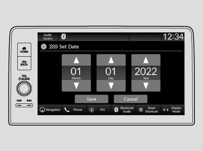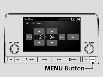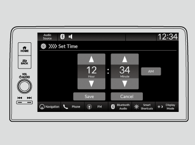 The clock is automatically updated through the audio system.Models with 7-in. Color TouchscreenYou can also select and enter with the LIST / SELECT (List / Selector) knob instead of the touch panel.Models with 9-in. Color TouchscreenYou can also adjust the clock by touching the clock displayed in the header area of the audio/information screen, Clock displayed on the home screen, or