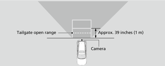 The rear camera view is restricted. You cannot see the corner ends of the bumper or what is underneath the bumper. Its unique lens also makes objects appear closer or farther than they actually are.Visually confirm that it is safe to drive before backing up. Certain conditions (such as weather, lighting, and high temperatures) may also restrict the rear view. Do not rely on the rearview display which does not give you all information about conditions at the back of your vehicle.The rear camera view is displayed prior to the audio/information screen.Models without rearview camera washerIf the camera lens is covered with dirt or moisture, use a soft, moist cloth to keep the lens clean and free of debris.Models with rearview camera washerIf the rear camera lens is covered with dirt or moisture, activate the rearview camera washer or use a soft, moist cloth to keep the lens clean and free of debris.