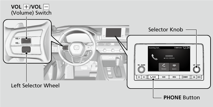 Left Selector Wheel: While receiving a call, the incoming call screen is displayed on the driver information interface. You can pick up the call using the left selector wheel.