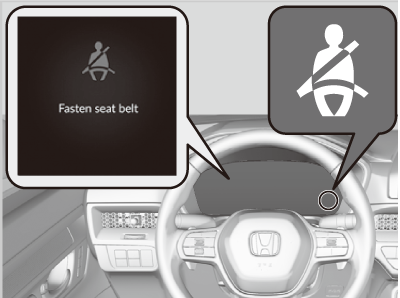 If the power mode is set to ON and a seat belt is not fastened, a beeper will sound and the indicator will blink. After a few seconds, the beeper will stop and the indicator will come on and remain illuminated until the seat belt is fastened.The beeper will periodically sound and the indicator will blink while the vehicle is moving until the seat belt is fastened.