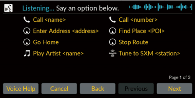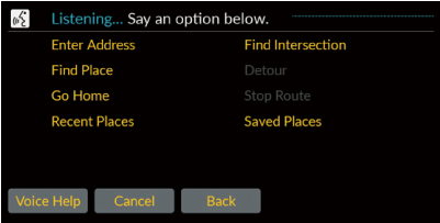 “Navigation” from the Voice Portal screen, the below screen appears. - Listen for the voice prompt, then say a voice command.