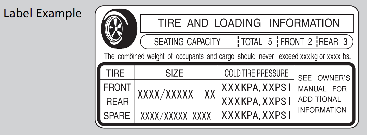 - Locate the statement “The combined weight of occupants and cargo should never exceed XXX kg or XXX lbs.” on your vehicle’s placard.