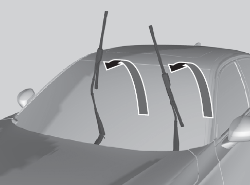 - Both wiper arms are set to the maintenance position as shown in the image.