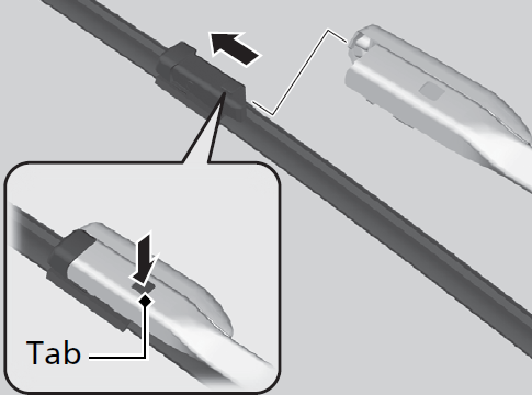- Depress the lock tab, then slide the wiper blade off the wiper arm.