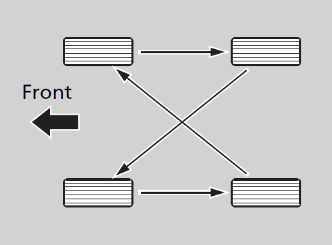 Rotate the tires as shown here.