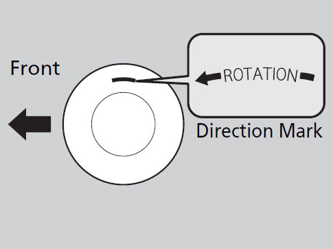 Directional tires should be mounted with the rotation indication mark facing forward, as shown below.
