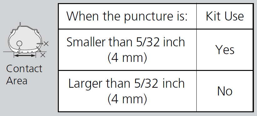 The kit should not be used in the following situations. Instead, contact a dealer or roadside assistance to have the vehicle towed.