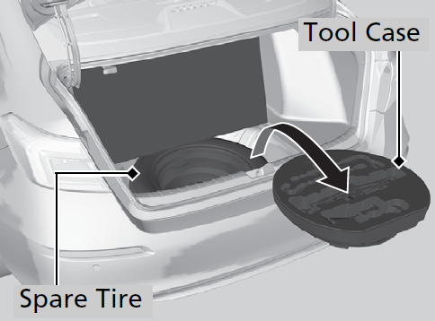 - Securely store the jack, wheel nut wrench, and jack handle bar back in the tool case. Store the case in the trunk.