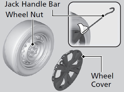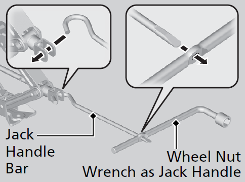 - Take the jack, wheel nut wrench, and jack handle bar out of the tool case.