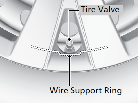 Models with wheel coverMake sure the wire support ring is on the outer side of the tire valve as shown.