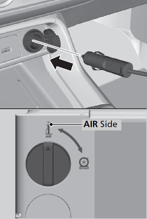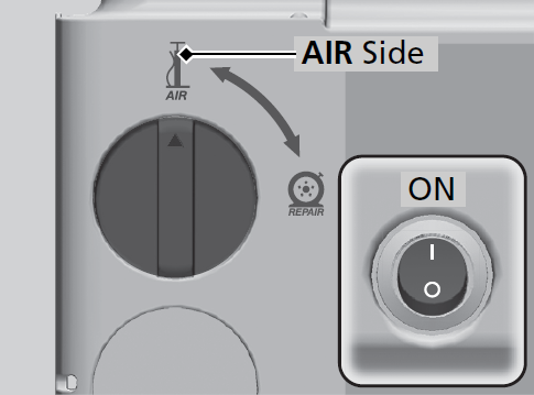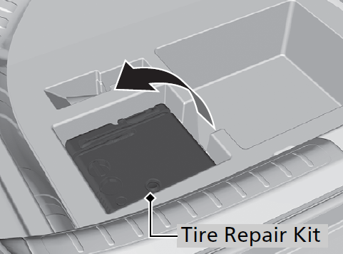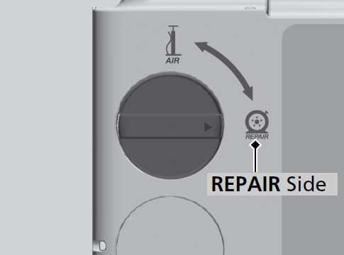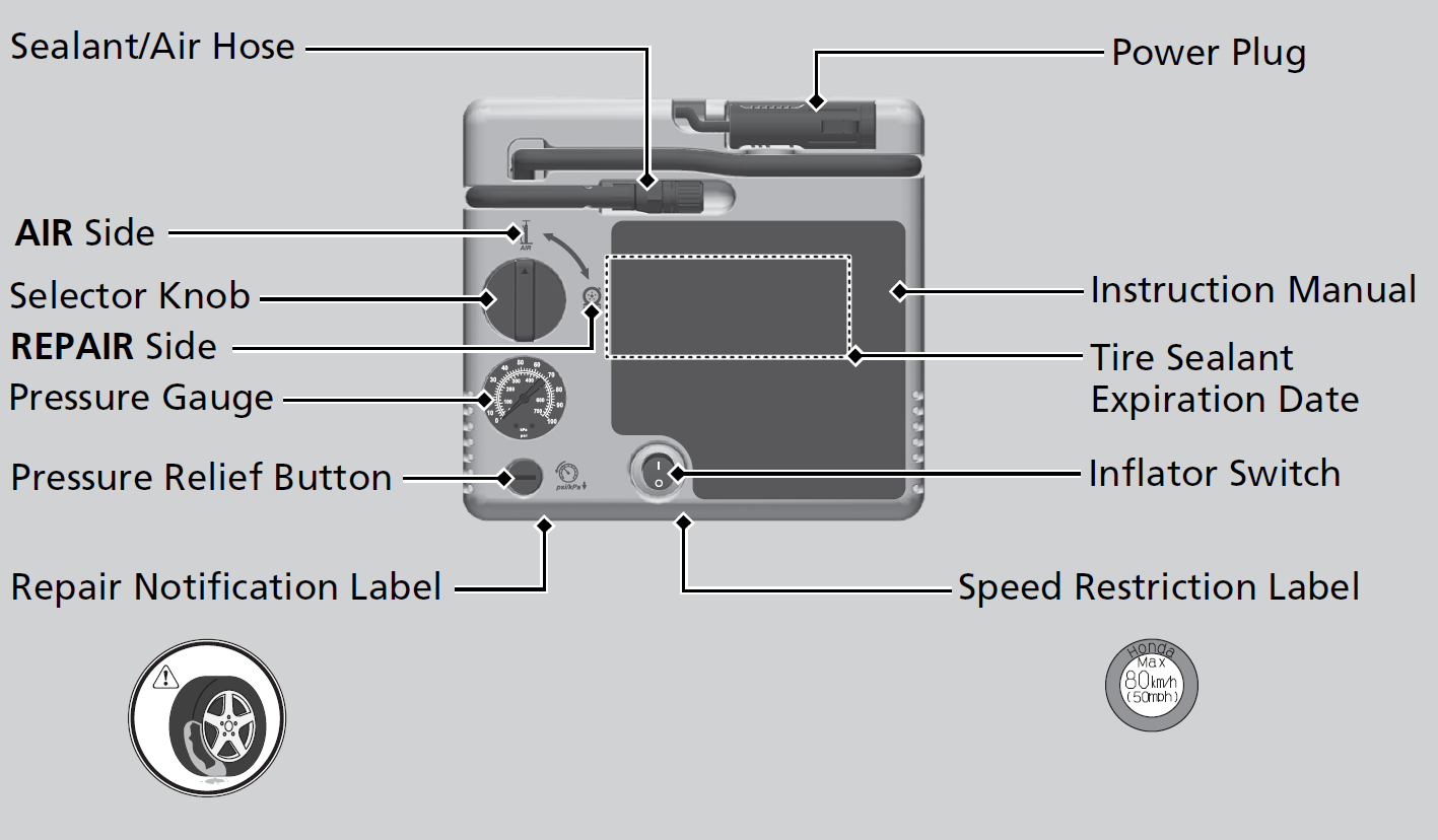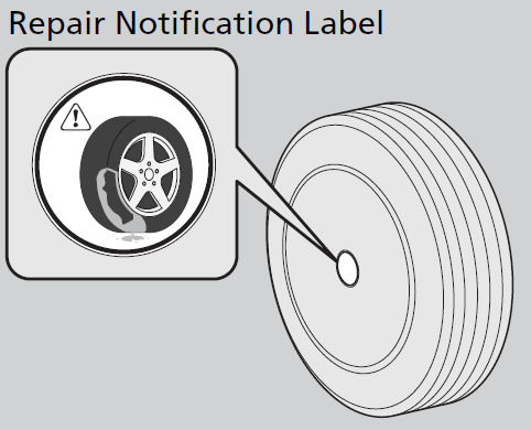 Repair notification label and speed restriction label are applied to the side of the temporary tire repair kit.When making a temporary repair, carefully read the instruction manual provided with the kit.