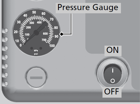 - After the air pressure reaches to specified pressure, turn off the kit.