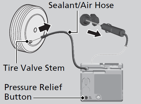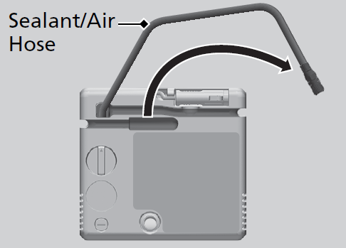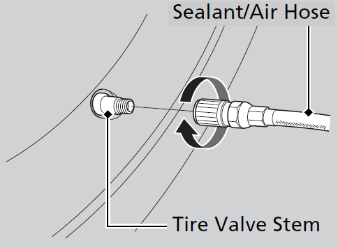 - Attach the sealant/air hose onto the tire valve stem. Screw it until it is tight.