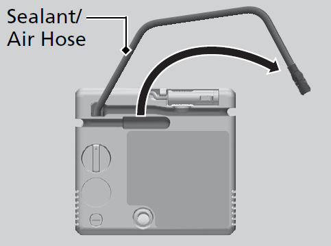 Until the sealant injection is complete, the pressure shown on the pressure gauge will appear higher than actual. After the sealant injection is complete the pressure will drop and then begin to rise again as the tire is inflated with air. This is normal. To accurately measure the air pressure using the gauge, turn the air compressor off only after the sealant injection is complete.If the required air pressure is not reached within 10 minutes, the tire may be too severely damaged for the kit to provide the necessary seal, and your vehicle will need to be towed.See a dealer for a replacement sealant bottle and proper disposal of an empty bottle.