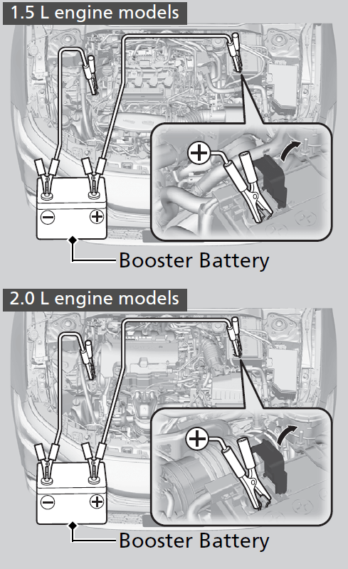 terminal. - Disconnect the other end of the jumper cable from the booster battery