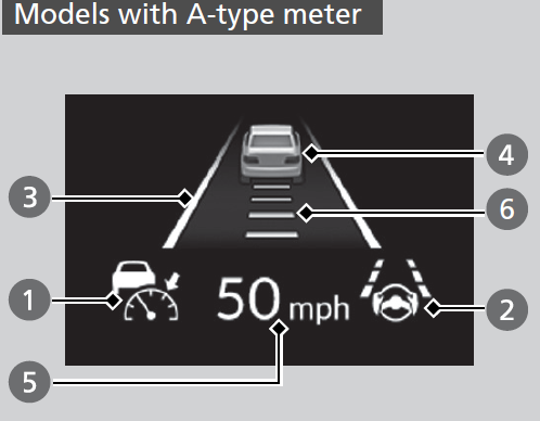 - Indicates that ACC with Low Speed Follow*/ACC* shows the set vehicle speed.