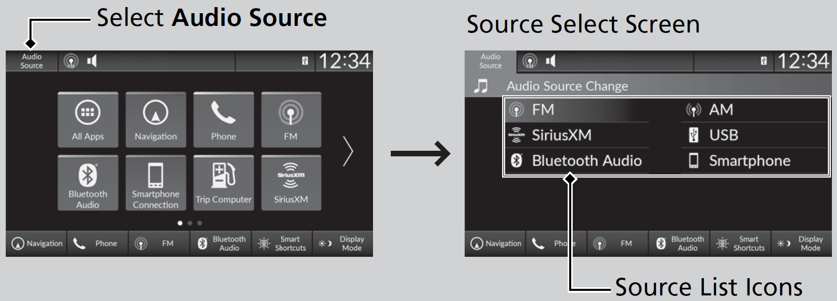 Select Audio Source in the header area, then select an icon on the source list to switch the audio source.