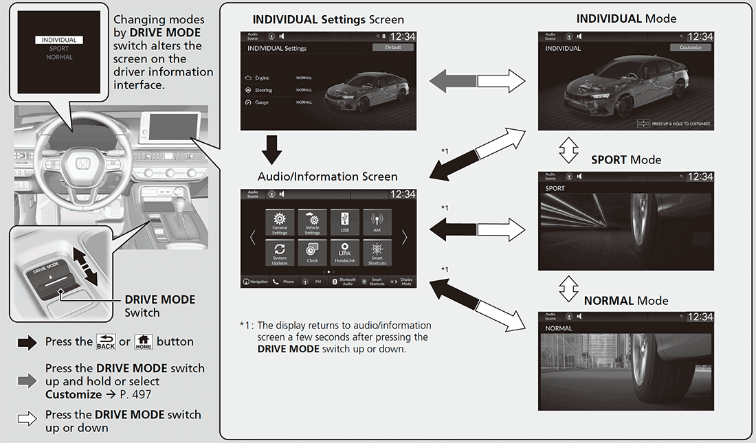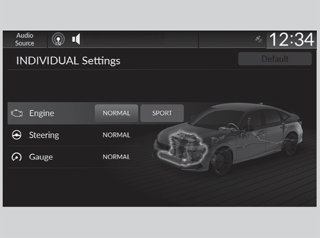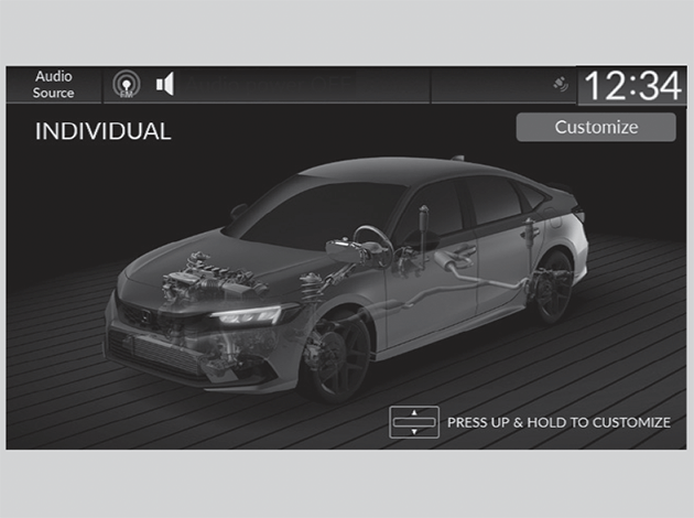 - Press the DRIVE MODE switch up and hold or select Customize to open the INDIVIDUAL Settings.