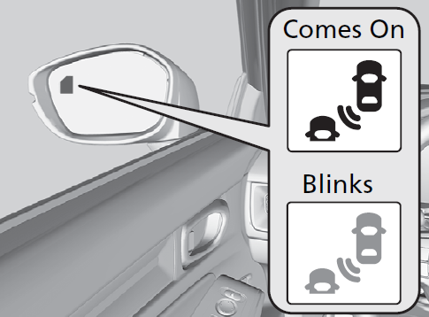Comes on when:- A vehicle approaches you from behind to overtake you at a speed difference of no more than about 31 mph (50 km/h).