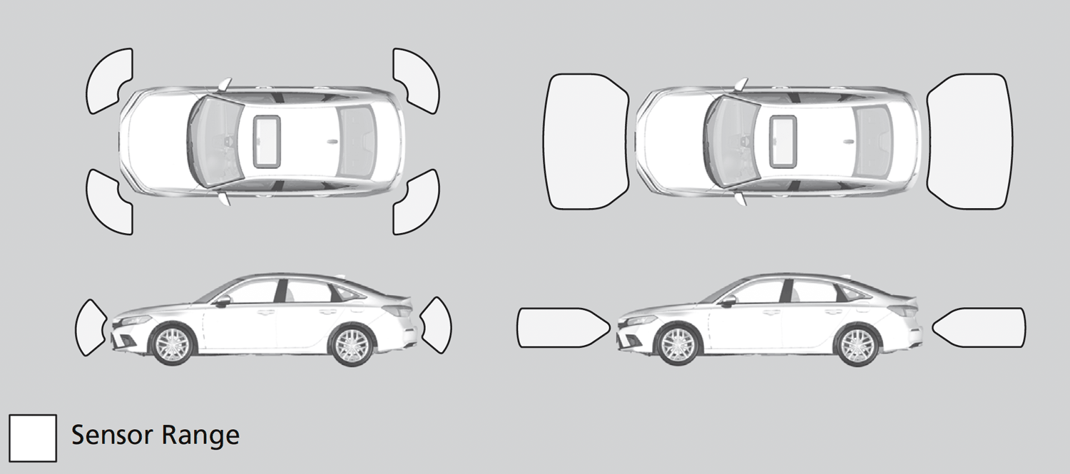 The sonar sensors are situated in the front and rear bumpers, and the front grille.