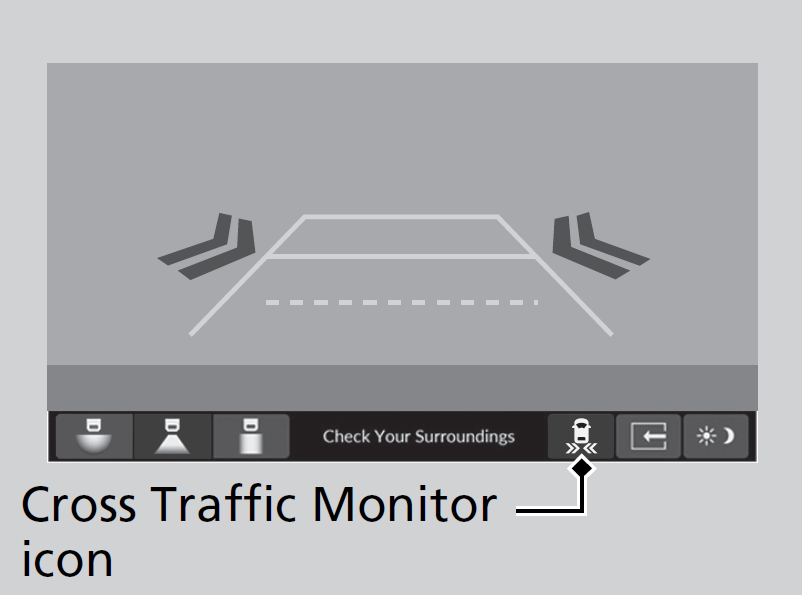 - Cross Traffic Monitor cannot detect all approaching vehicles and may not detect an approaching vehicle at all.