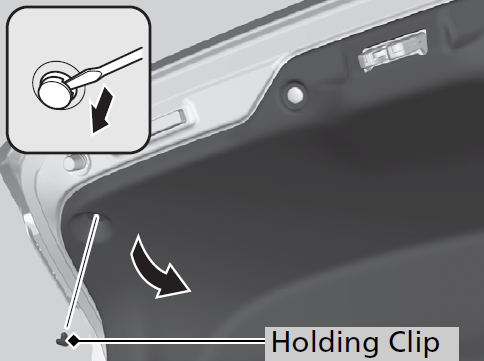 1. Remove the holding clip using a flat-tip screwdriver, then pull the lining back.