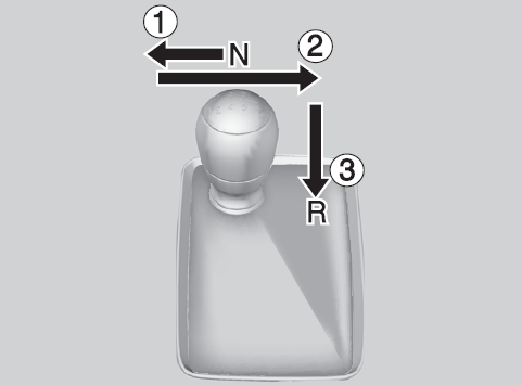 - Depress the clutch pedal, move the shift lever all the way to the left, and shift to R.