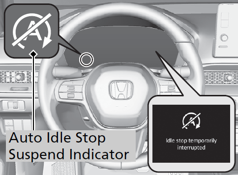 - The Auto Idle Stop suspend indicator comes on and a message appears on the gauge when the Auto Idle Stop system cannot be activated.