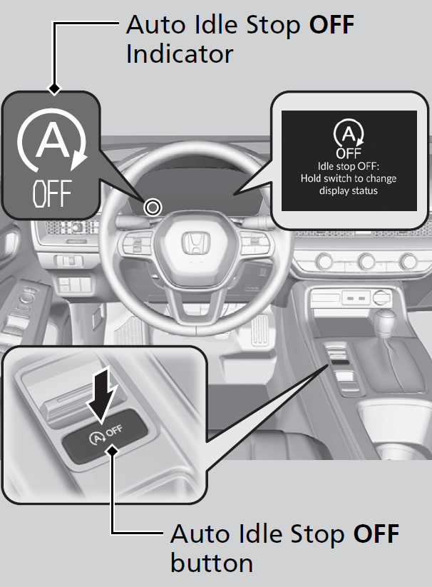 - To turn the Auto Idle Stop system off, press this button. The Auto Idle Stop system stops.