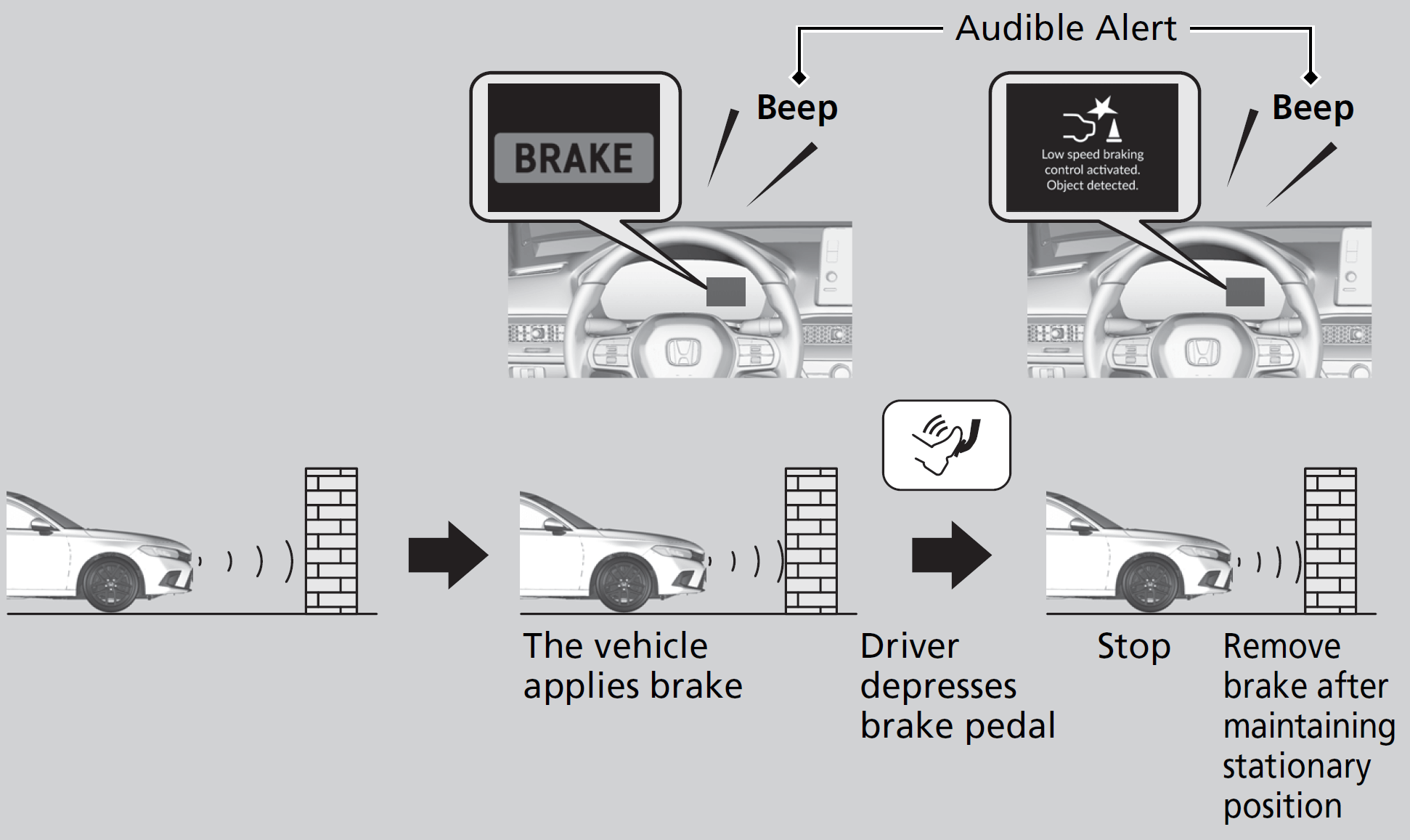 After Low Speed Braking Control has activated once, it will not activate again for the same obstacle.