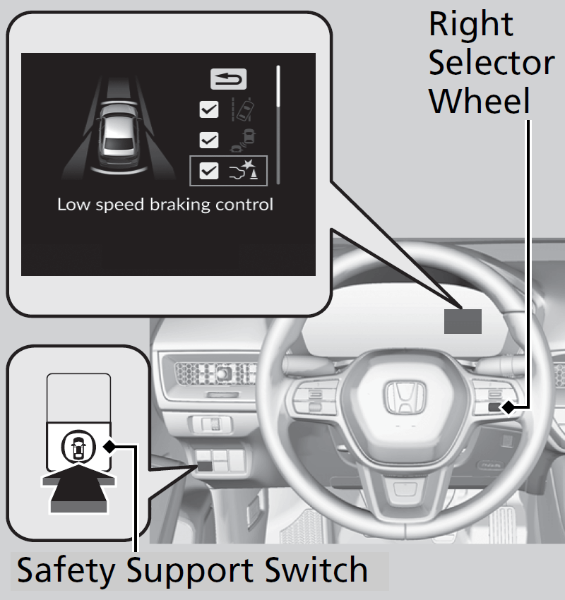 They can be activated again after driving for a certain distance after last activation.Low Speed Braking Control activates separately when moving forward and reversing. (For example, if it activates when moving forward, it can be activated again immediately if reversing.)