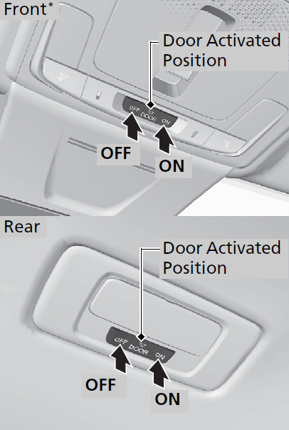 Models with moonroofWhen the front interior light switch is in the door activated position and any door is open, the map light will not go off when you press the switches.