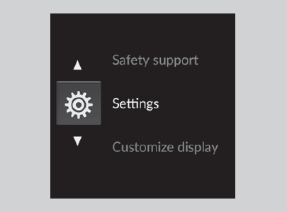 (home) button, to select Settings, then press the left selector wheel.- Vehicle settings appears on the display.