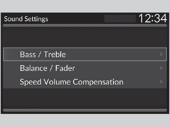 Select an item from the following choices:- Bass / Treble: Bass, Midrange, Treble