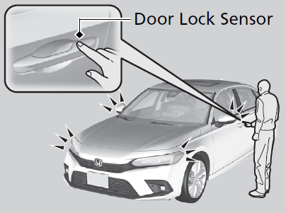 - If you grip a front door handle or touch the front door lock sensor wearing gloves, the door sensor may be slow to respond or may not respond by locking/unlocking the doors.