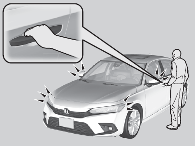 - The door may be unlocked if the door handle is covered with water in heavy rain or in a car wash if the keyless remote is within range.