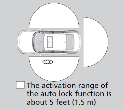 The auto lock function activates when all doors are closed, and the keyless remote is within about 5 feet (1.5 m) radius of the outside door handle or trunk release button.