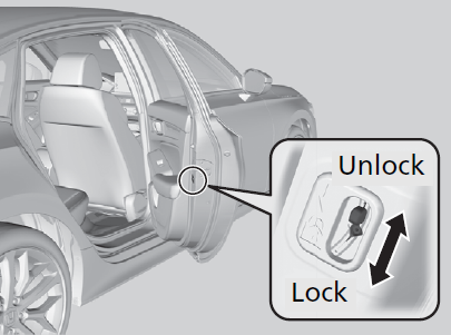 The childproof door locks prevent the rear doors from being opened from the inside regardless of the position of the lock tab.