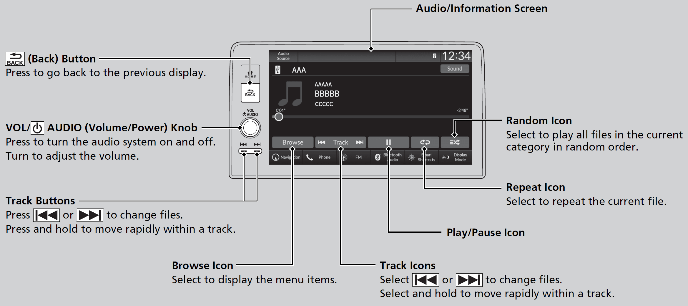 Your audio system reads and plays sound files on a USB flash drive in either MP3, WMA, AAC*1, FLAC, or WAV format.