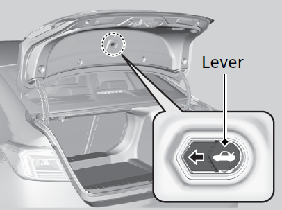 The trunk release lever allows you to open the trunk from inside for your safety.