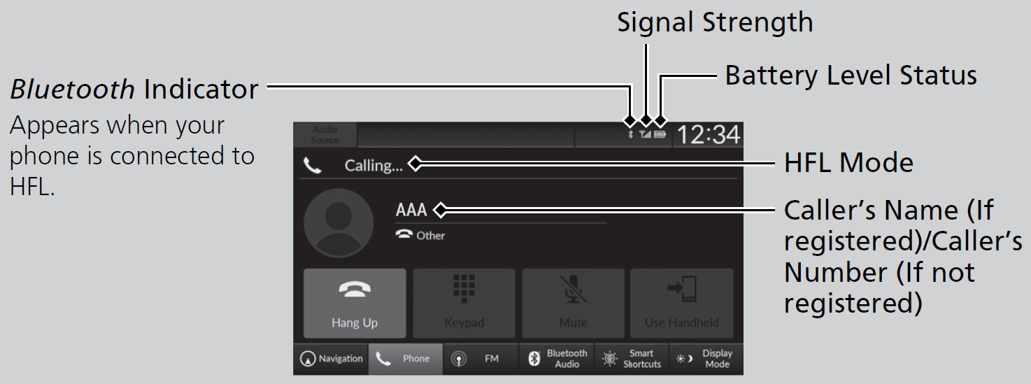 The audio/information screen notifies you when there is an incoming call.