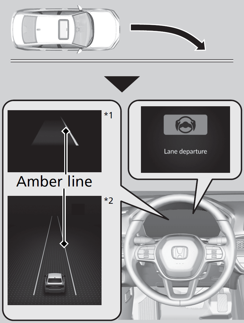 When you have selected Warning only*1/Warning Only*2 from the customized options using the driver information interface* or audio/information screen*, the system does not operate the steering wheel.