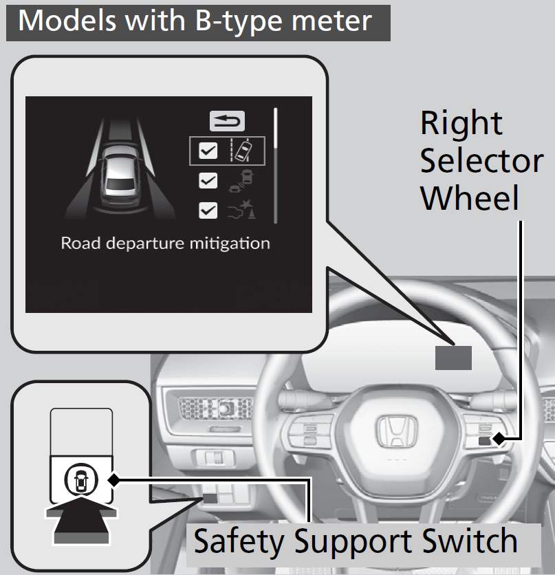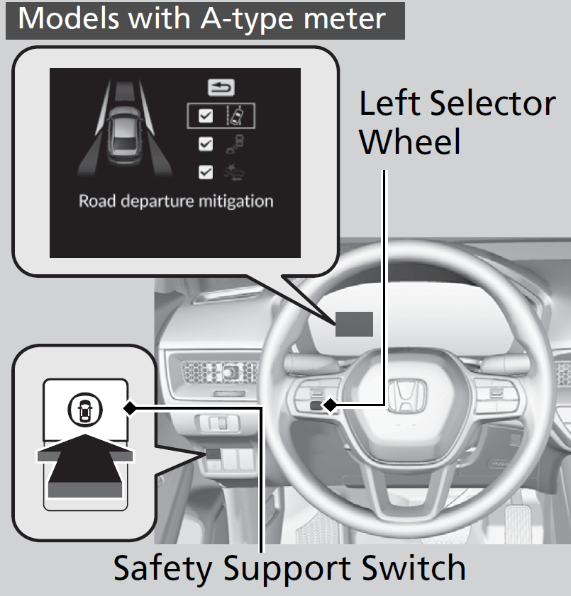 There are times when you may not notice the Road Departure Mitigation system functions due to your operation of the vehicle, or road surface conditions.You can change the settings for the Road Departure Mitigation system.