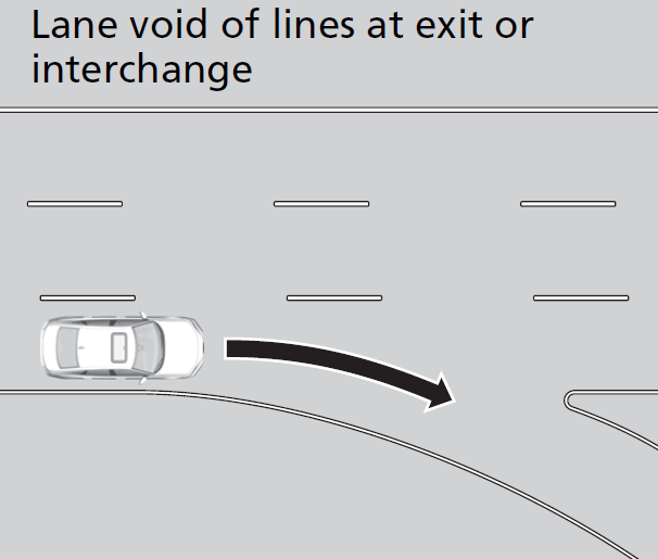 In the following cases, traffic lane lines may disappear on the gauge, the beeper may sound, and the LKAS may be automatically canceled: