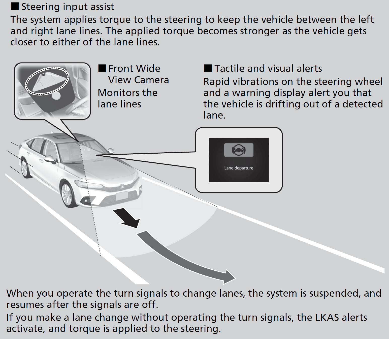 Once these conditions no longer exist, the LKAS automatically resumes.