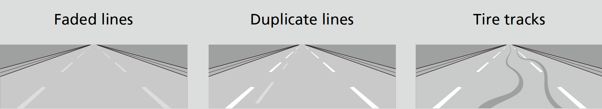 - When objects on the road (curb, guard rail, pylons, etc.) are recognized as white (or yellow) lines.