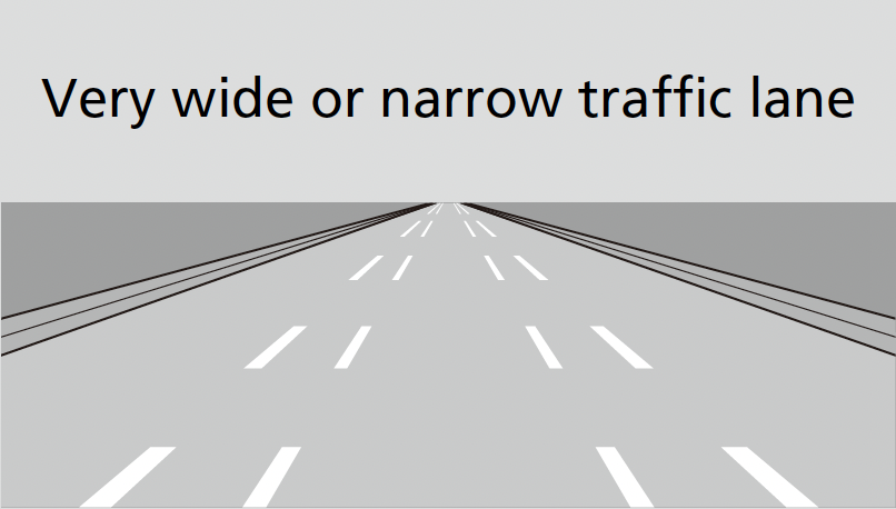 - The lane markings are extremely narrow, wide, or changing.